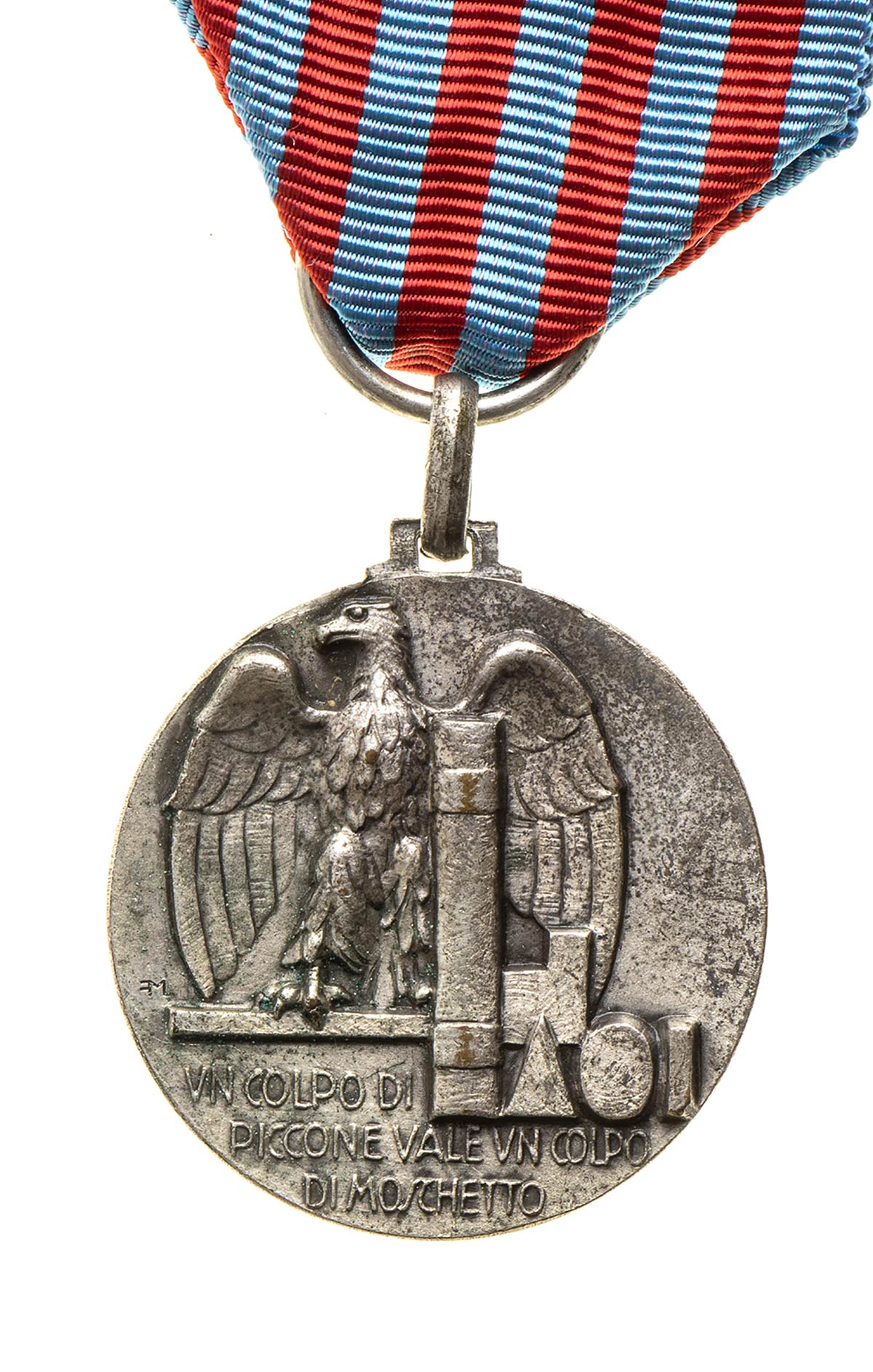 BELLA MEDAGLIA IN ARGENTO DELLE CENTURIE DEI LAVORATORI IN AOI, FIRMATA AFFERA, NASTRO NON ORIGINALE