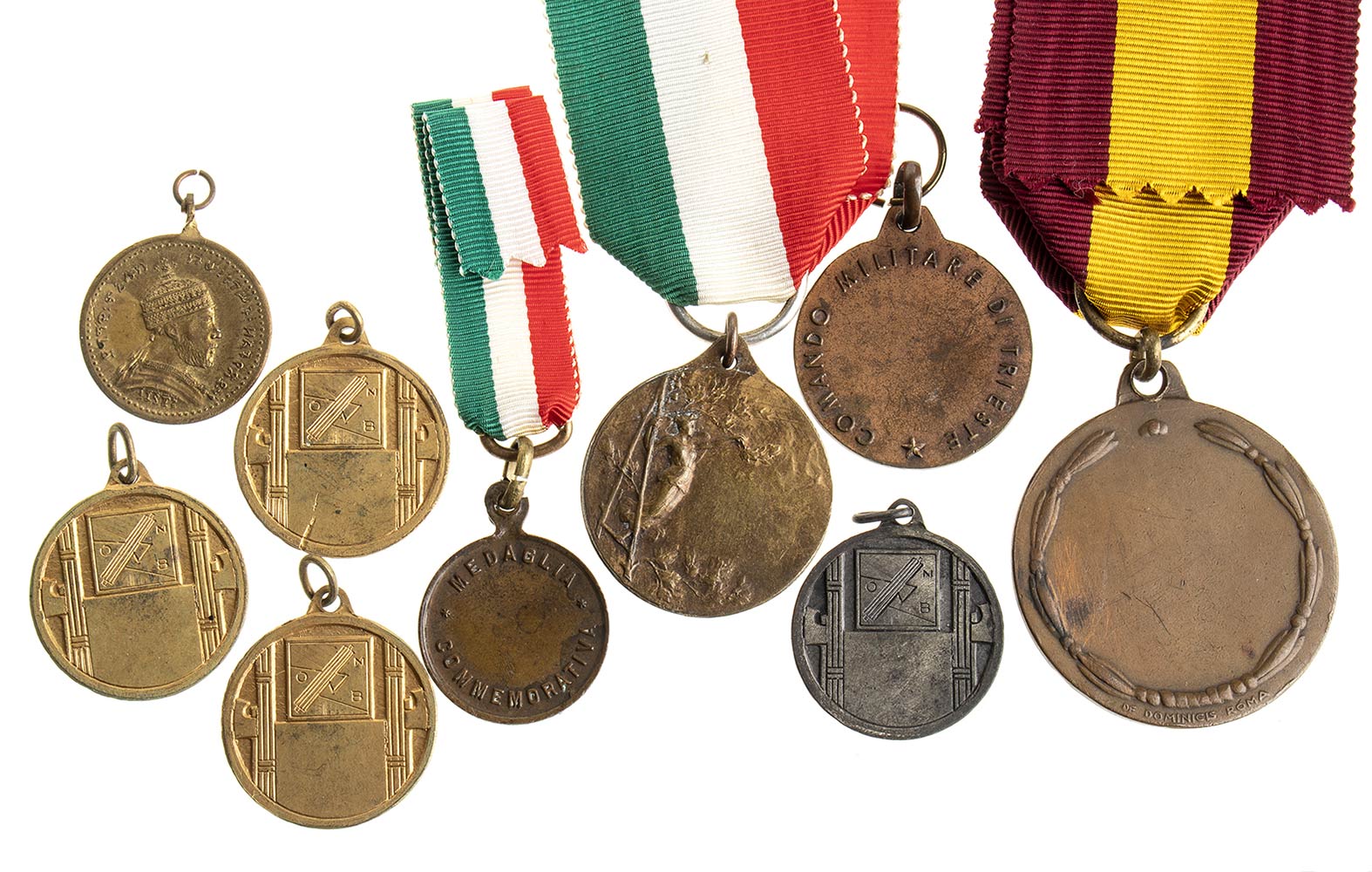 QUATTRO DELL'OND, UNA DELL’ASSOCIAZIONE MESSINESE SPORT E SPETTACOLO,UNA DEL PRESTITO NAZIONALE, UNA MEDAGLIA COMMEMORATIVA UMBERTO I ED UNA ETIOPE CON MENELIK