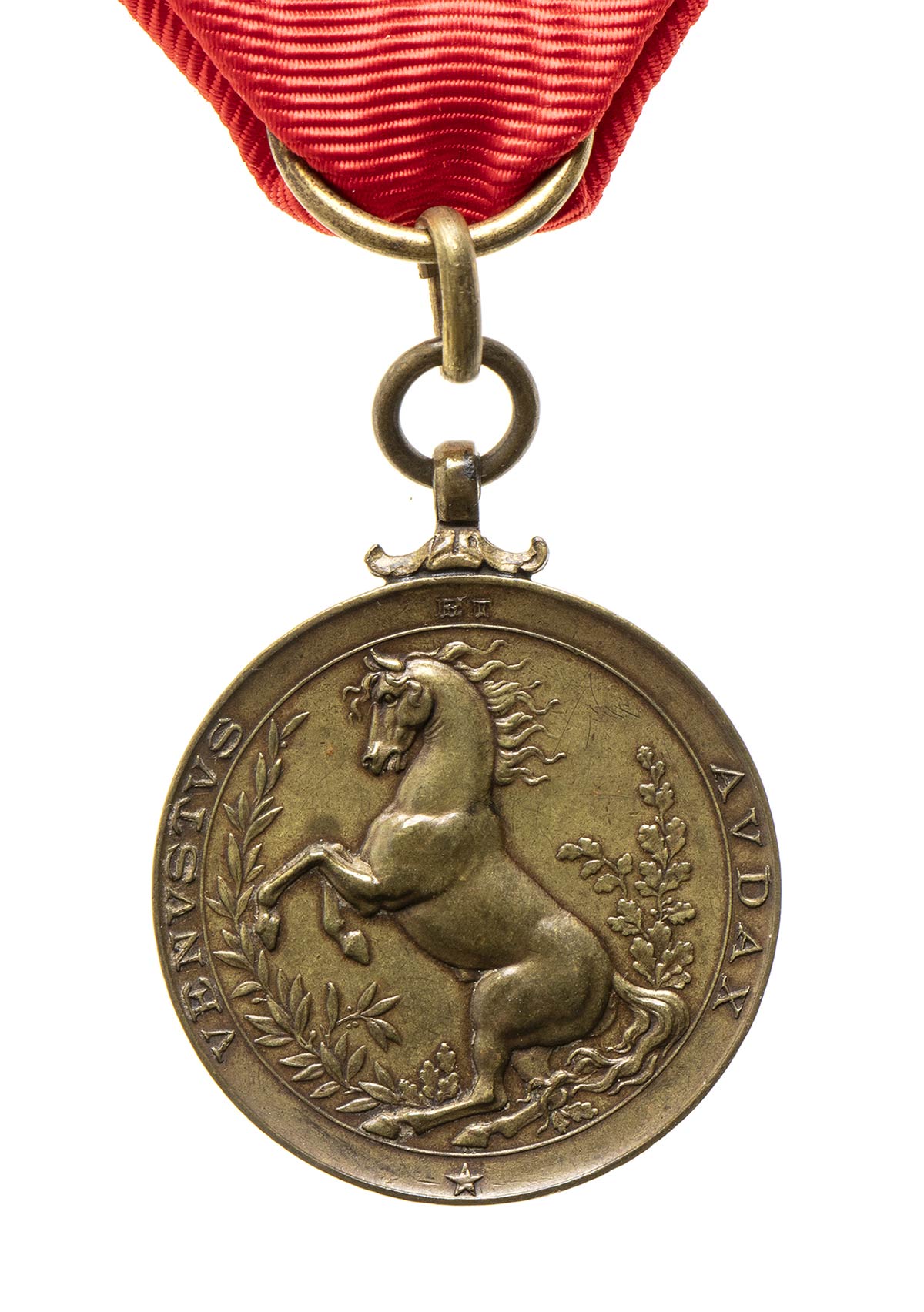 MEDAGLIA CONIATA PER I CENTO ANNI DEL PIEMONTE REALE, NASTRO ORIGINALE
