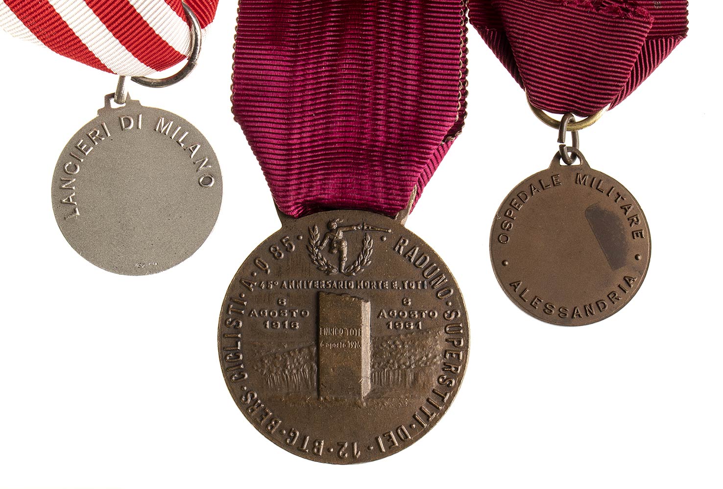 MEDAGLIA REPUBBLICA ITALIANA IN ARGENTO DEI LANCIERI DI MILANO, IN BRONZO DEL RADUNO DEI BERSAGLIERI CICLISTI E BRONZO DELL'OSPEDALE MILITARE DI ALESSANDRIA