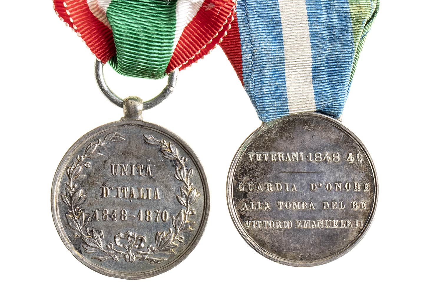 LOTTO COMPOSTO DA UNA INUSUALE MEDAGLIA PER L’UNITA’ D’ITALIA 1848-70 CON NASTRO NON COEVO E MEDAGLIA DELLE GUARDIE D’ONORE DEL PANTHEON DI EPOCA UMBERTINA CON NASTRO COEVO