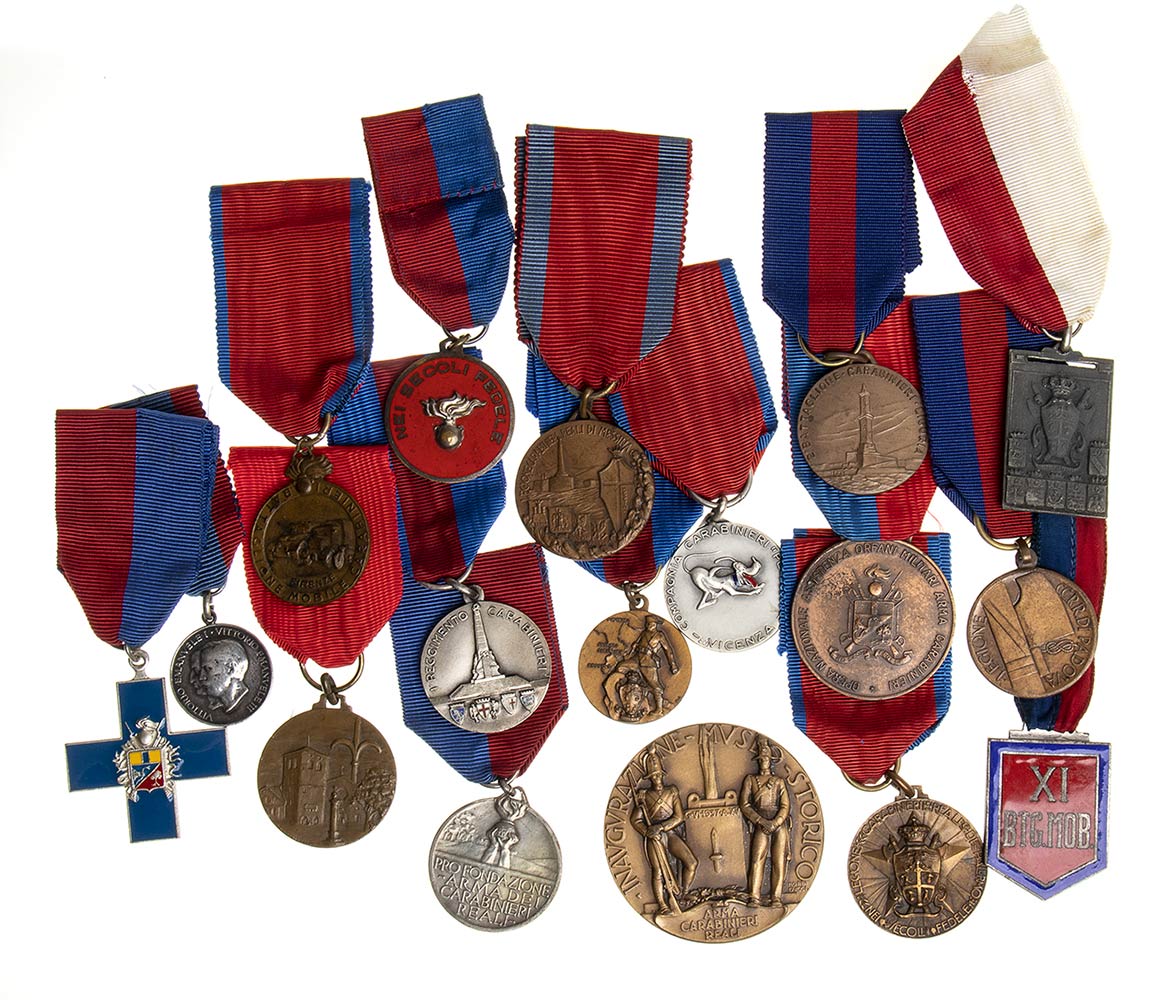 PICCOLA COLLEZIONE DI MEDAGLIE DEI CARABINIERI, UN MEDAGLIONE NON PORTATIVO IN BRONZO COMMEMORATIVO L’INAUGURAZIONE DEL MUSEO DELL’ARMA NEL 1937, SEI MEDAGLIE CCRR DELLE LEGIONI DI MESSINA, PALERMO, PADOVA, TRIESTE E CATANZARO IN BRONZO, UNA RETTANGOLARE IN ZAMA E VERNICE DELLA LEGIONE CARABINIERI REALI DEL LAZIO, UNA IN METALLO ARGENTATO PRO FONDAZIONE ARMA CCRR, UNA IN ARGENTO COMMEMORATIVA L’ISTITUZIONE DELL’ARMA, UNA BELLISSIMA REPUBBLICA DELLA LEGIONE CARABINIERI DI UDINE,BATTAGLIONE MABILE CC FIRENZE, 2° BTG CC LIGURIA, MEDAGLIA AL MERITO PER ASSISTENZA AGLI ORFANI, 1° REGGIMENTO CC IN ARGENTO, COMPAGNIA CARABINIERI PLUTO DI VICENZA, XI BTG. MOBILE, CROCE GENERICA