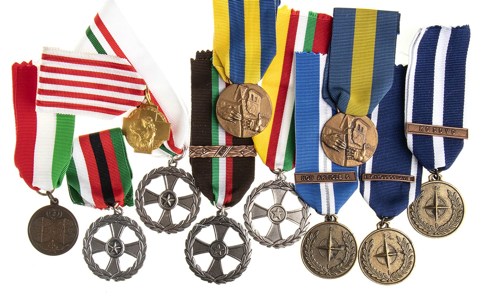 MEDAGLIE DI OPERAZIONI DI PEACEKEEPING, COMMEMORATIVE, TERREMOTO DEL FRIULI ETC, NASTRI ORIGINALI