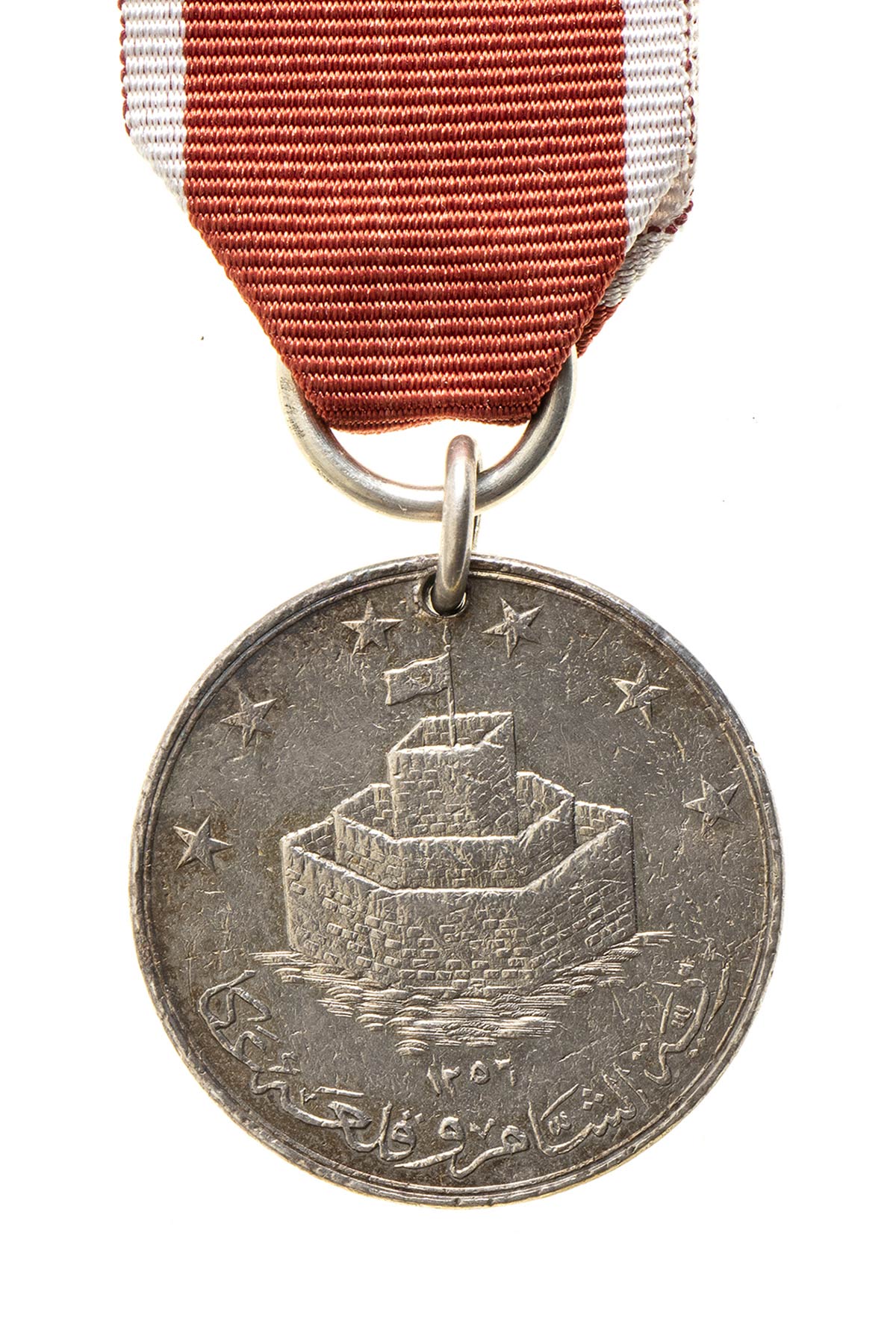 MEDAGLIA PER LA CAMPAGNA DI SIRIA, FORTEZZA DI ACRI E THUGRA SULTANIALE, IN ARGENTO PER UFFICIALI E SOTTUFFICIALI, NASTRO NON ORIGINALE, NON ATTRIBUITA
