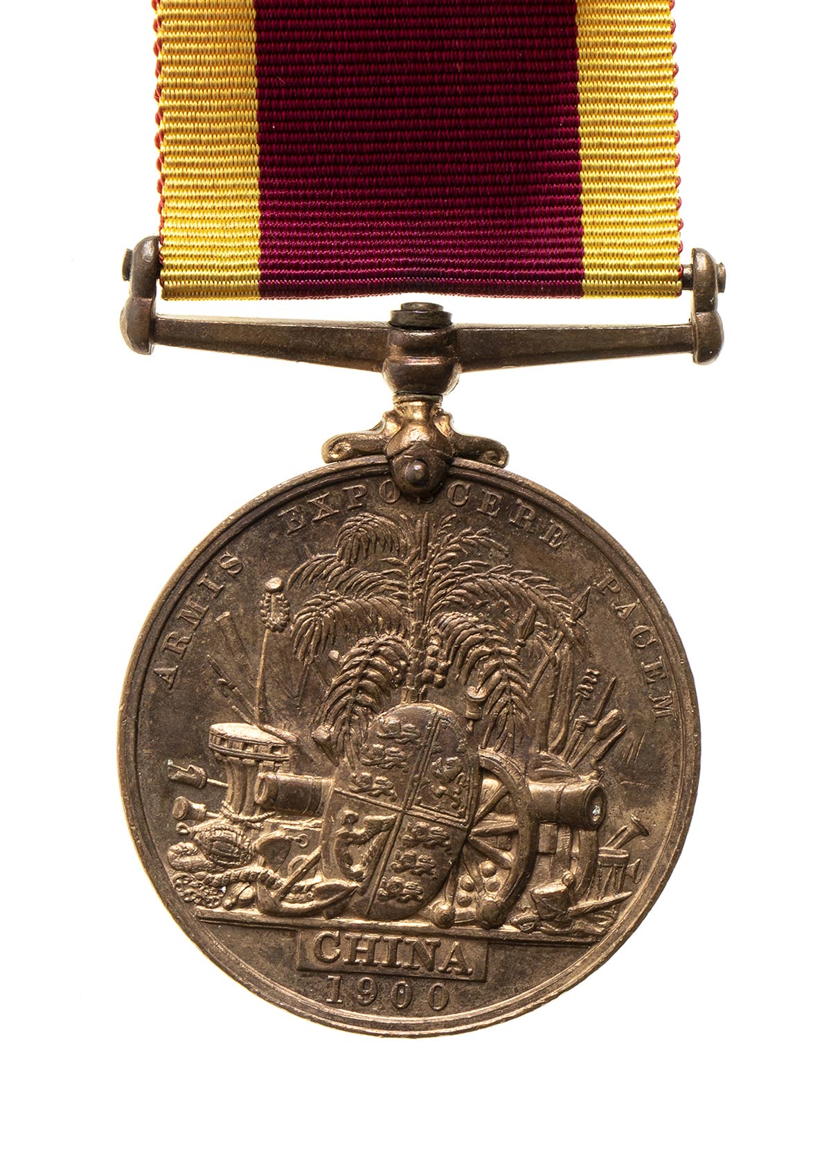 MEDAGLIA IN BRONZO DELLA CAMPAGNA DI CINA DEL 1900, REGINA VITTORIA ANZIANA, CONCESSA A PTE ....... 20TH INF? NASTRO NON COEVO
