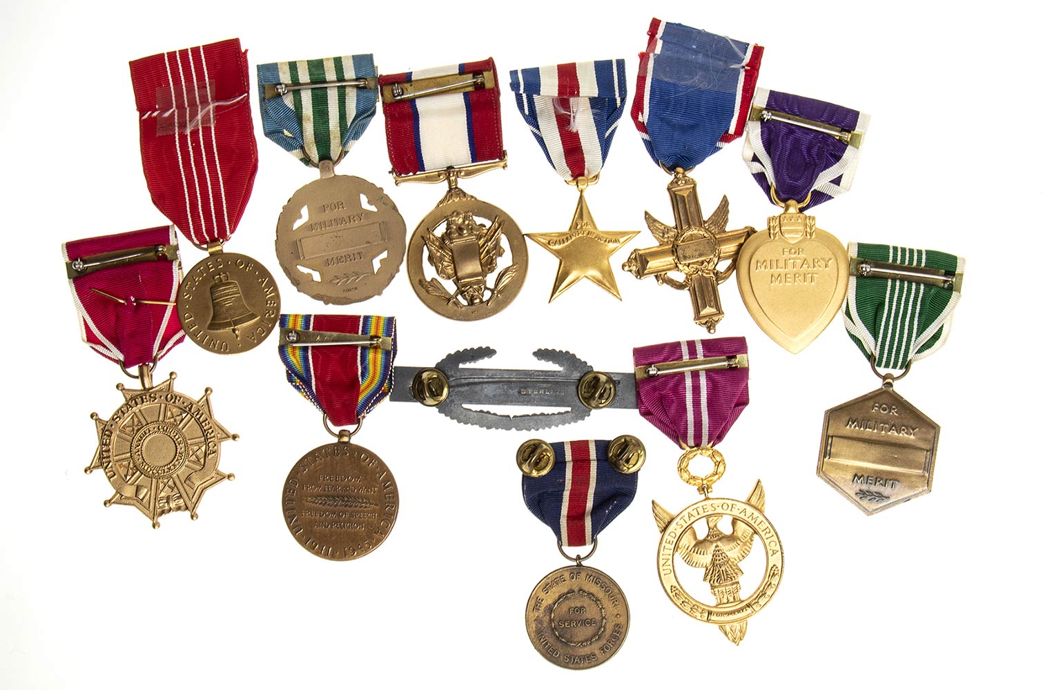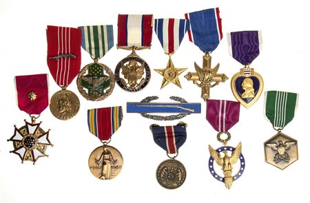 BEL LOTTO DI MEDAGLIE STATUNITENSI, TRA CUI UNA PRESIDENTIAL MEDAL OF MERIT, DISTINGUED SERVICE MEDAL, PURPLE HEART, LEGION OF MERIT ED ALTRE MEDAGLIE DI CAMPAGNA E BENEMERENZA