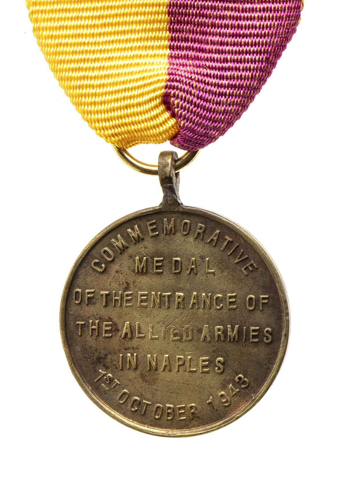 MEDAGLIA COMMEMORATIVA DELL'ENTRATA DEGLI ALLEATI A NAPOLI, NASTRO COEVO