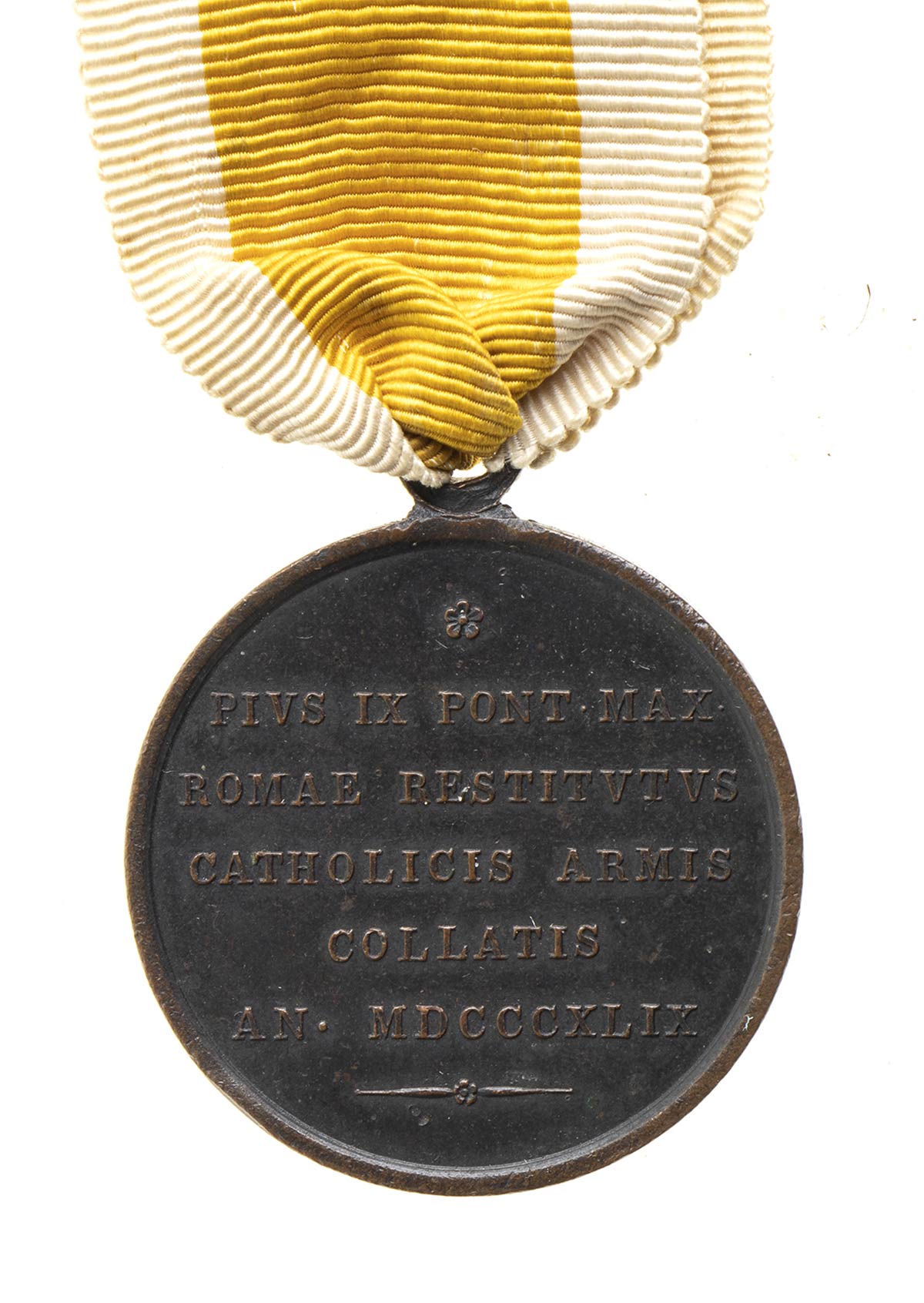 MEDAGLIA PER I DIFENSORI DELLA SANTA SEDE 1849, “ARMIS COLLATIS”