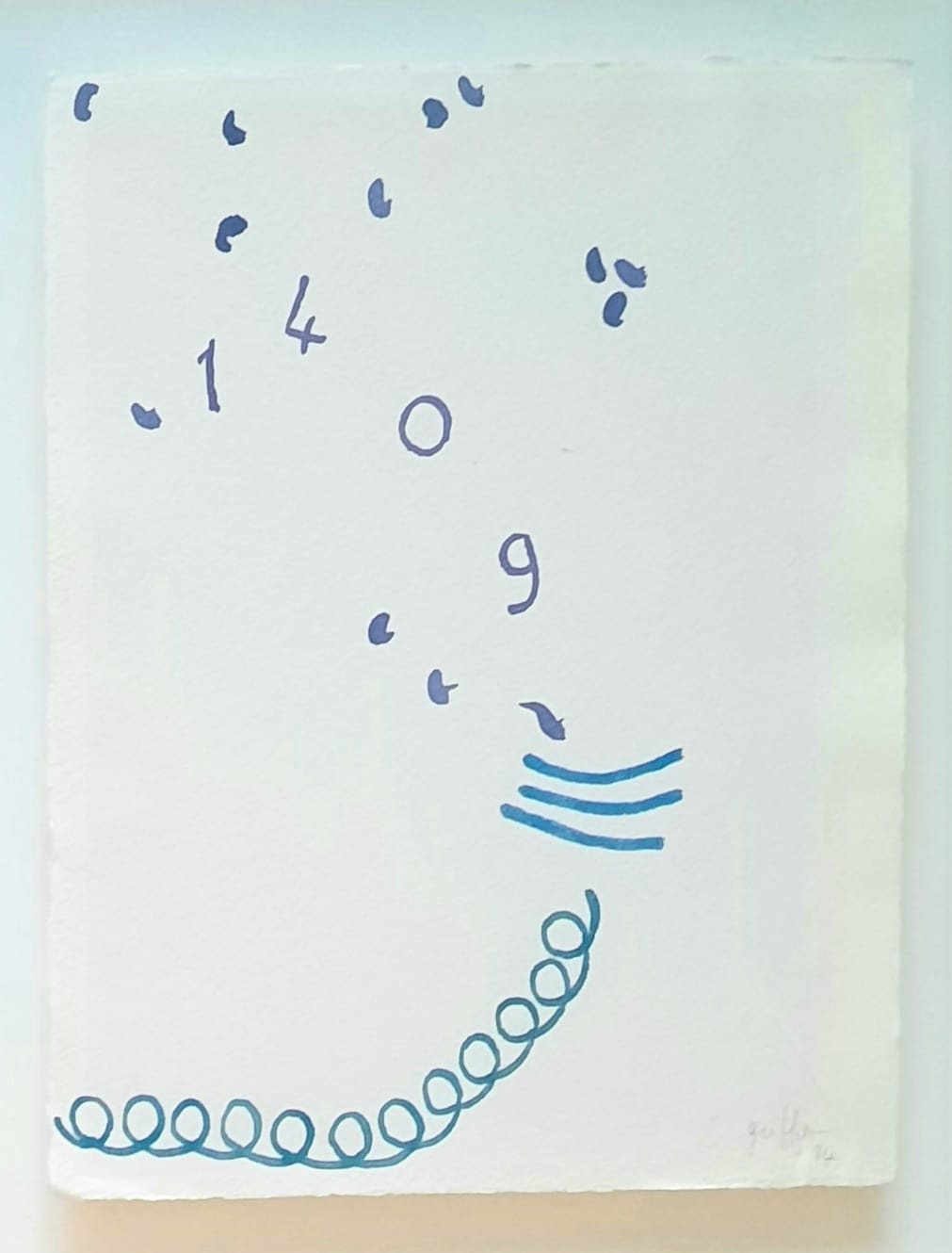 Autentica dell’artista su fotografia. Bibliografia: -Giorgio Griffa, Sorella acqua a cura di Federico Sardella, pag. 176 (ill.)