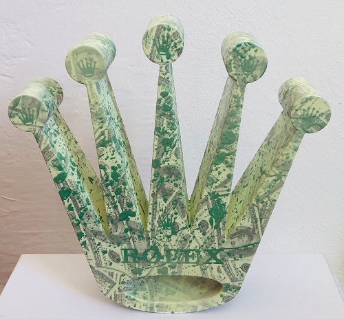 scultura, stencil spray luminescente cm 21 firmata alla base