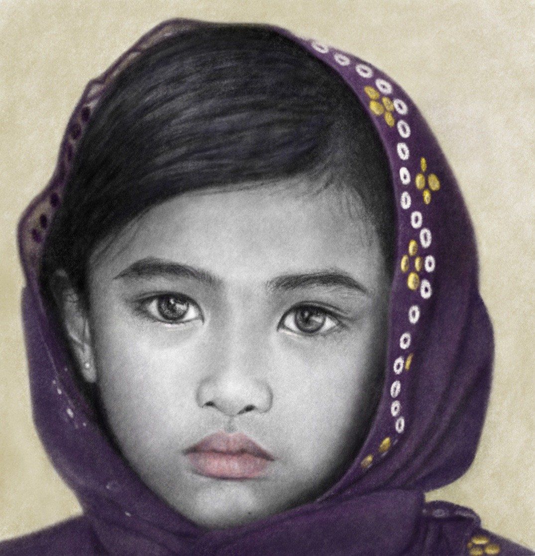 Vittorialessia Brunetti Pittura digitale su tela 65x67 Bambina con hijab 2021 Autentica dell'artista su foto