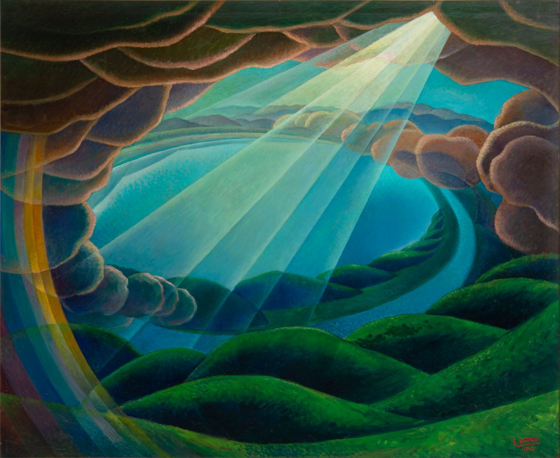 Gerardo Dottori Olio su tavola 124x151 Lago Umbro Anni '30