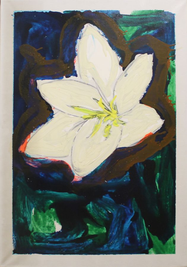 Mario Schifano Smalto e acrilico su tela 70x100 Fiore 1990