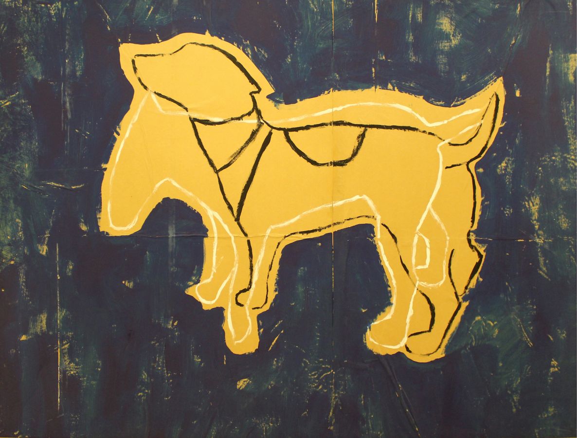 Mario Schifano Smalto su carta povera tamburata 115x164 Cane 1997