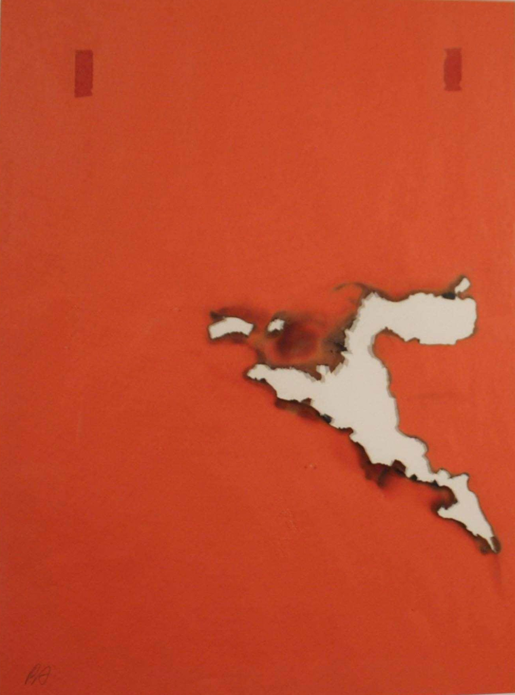 Bernard Aubertin Tecnica mista su carta 70x50 Carta rossa Brulleè 1970 Autentica dell'artista su foto