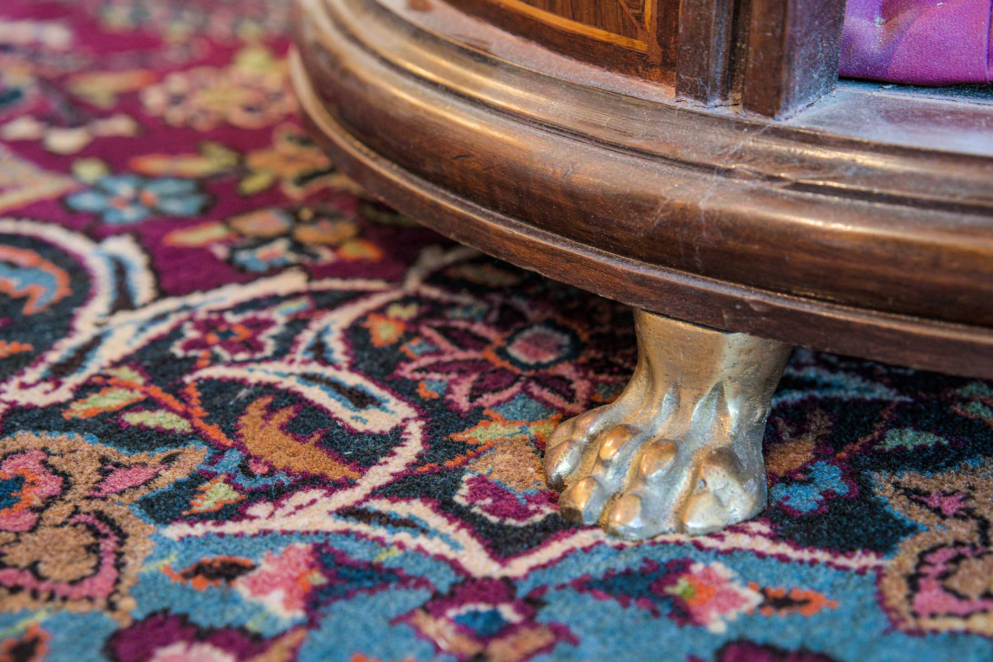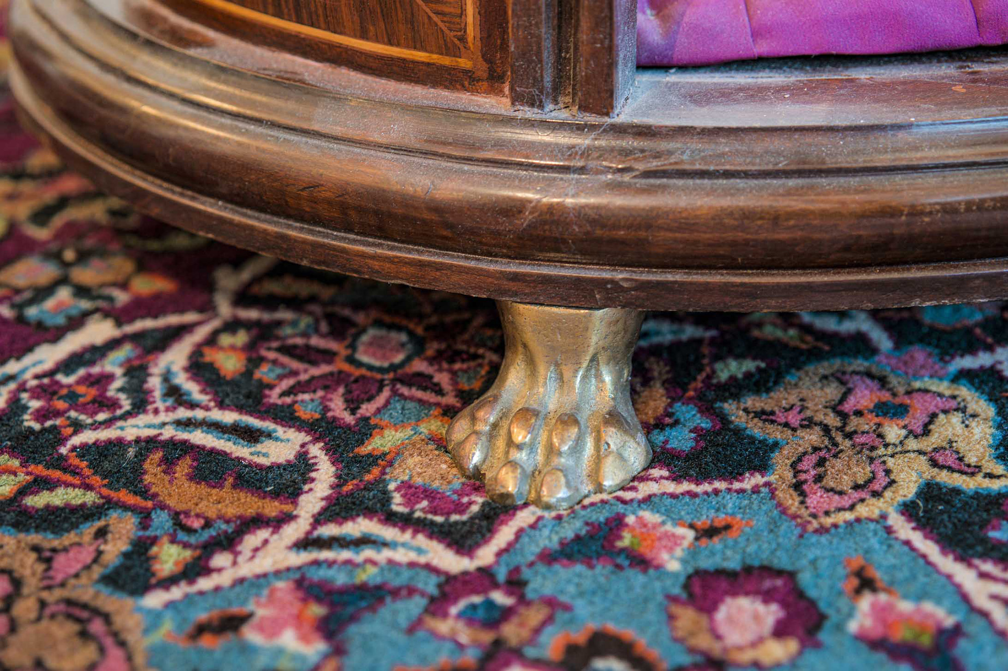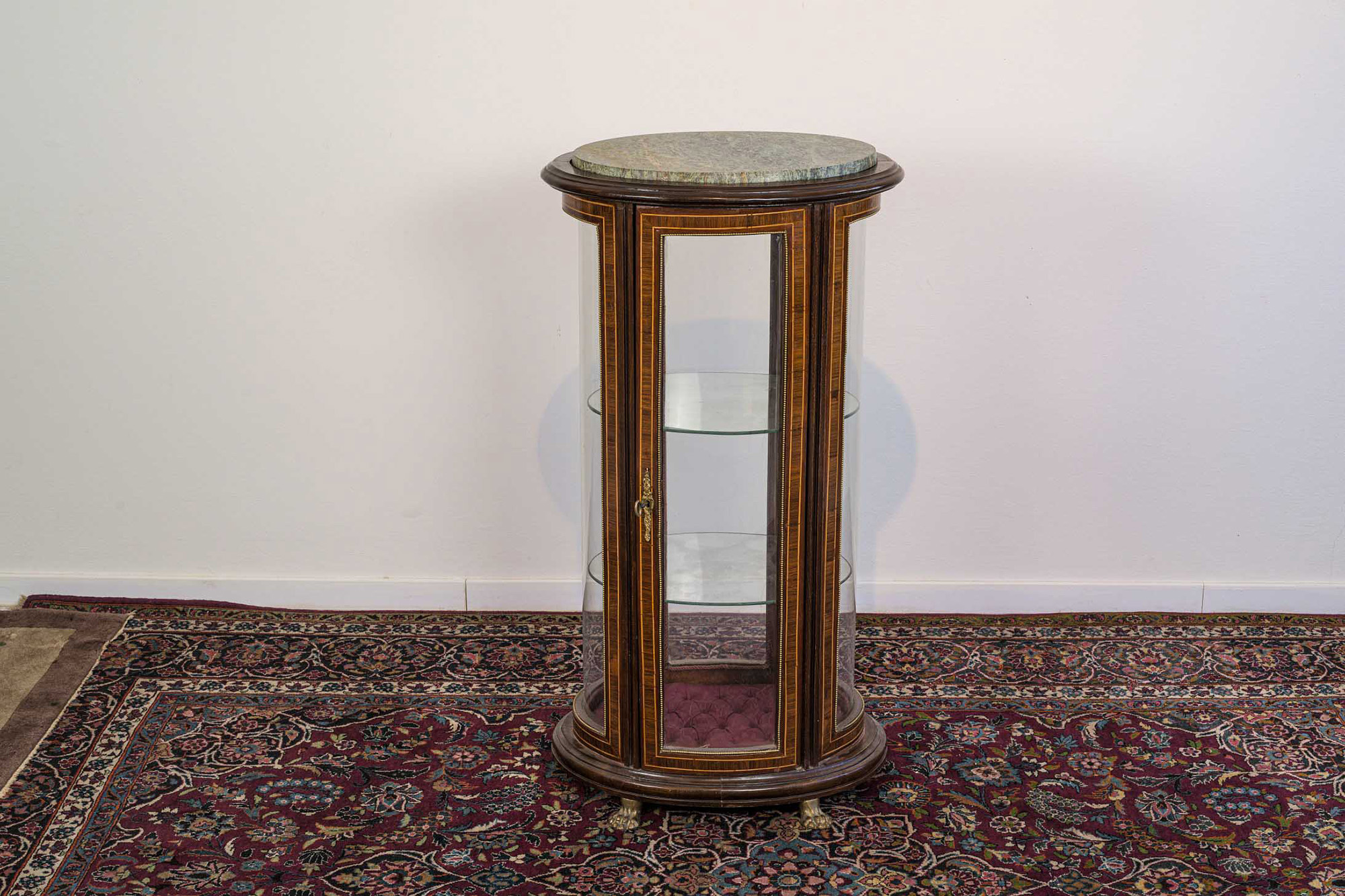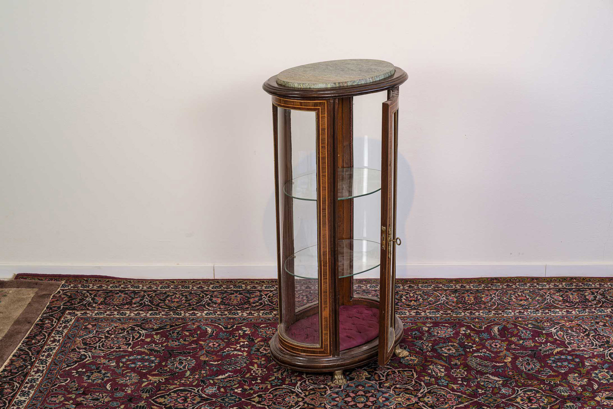 in mogano filettato in bois de rose, piano superiore in marmo verde, uno sportello