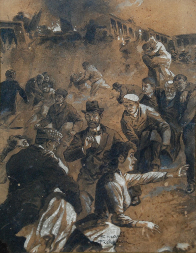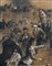 Riccardo Pellegrini (Milano 1863 - Crescenzago 1934) tecnica mista su cartone raff. sommossa popolare. firmato in basso al centro