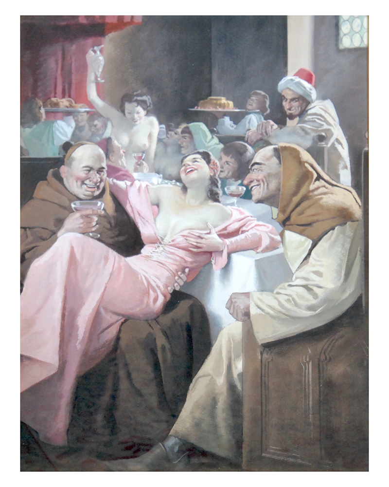 Gino Boccasile (Bari 1901 - Milano 1952) tempera su cartone raff.scena decamerone firmato in basso a destra