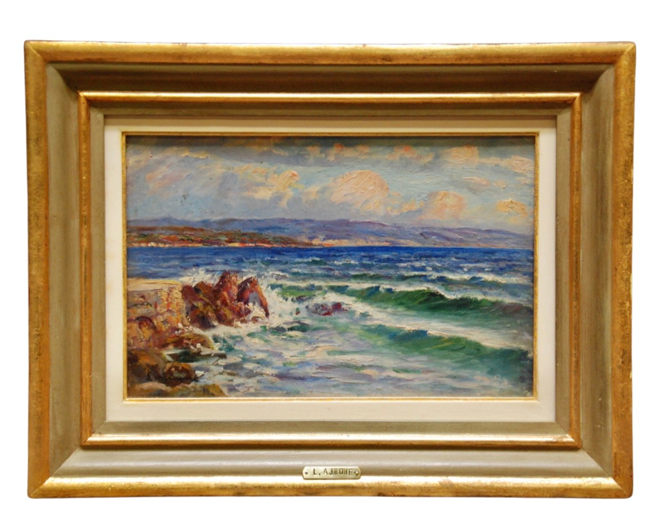 Ajmone Lidio (1884 - 1945) olio su cartoncino raff. marina firmato in basso a sinistra