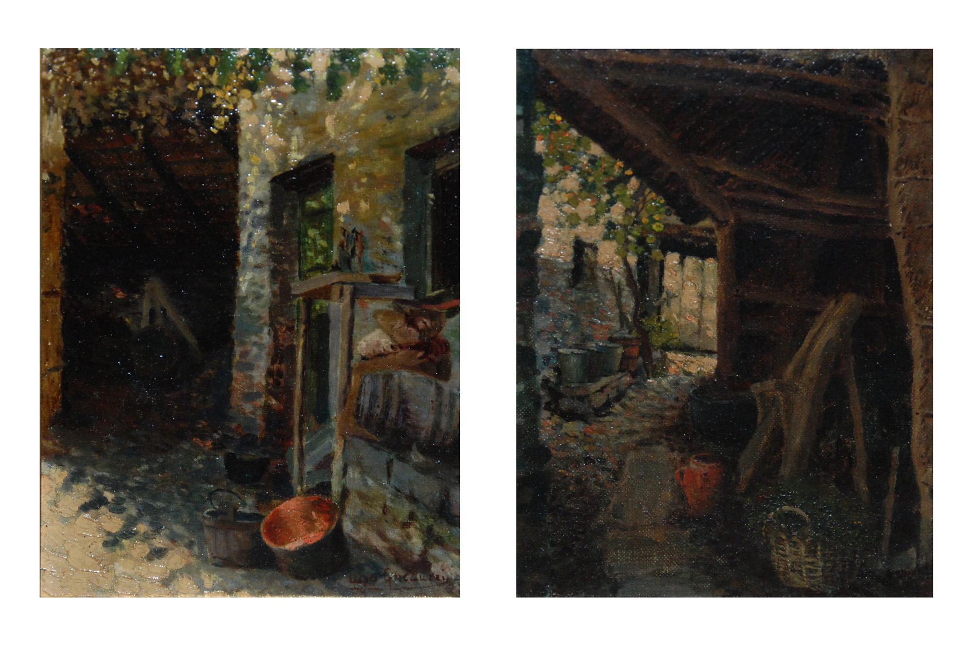 Ugo Gheduzzi (1853 - 1925) coppia di oli su tela raff. scorci di case di campagna uno firmato in basso a destra