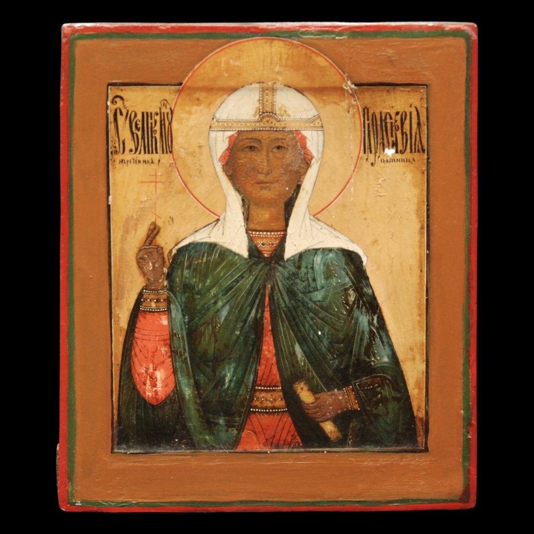 Icona tempera all'uovo su tavola raff. Madonna benedicente Russia sec. XIX