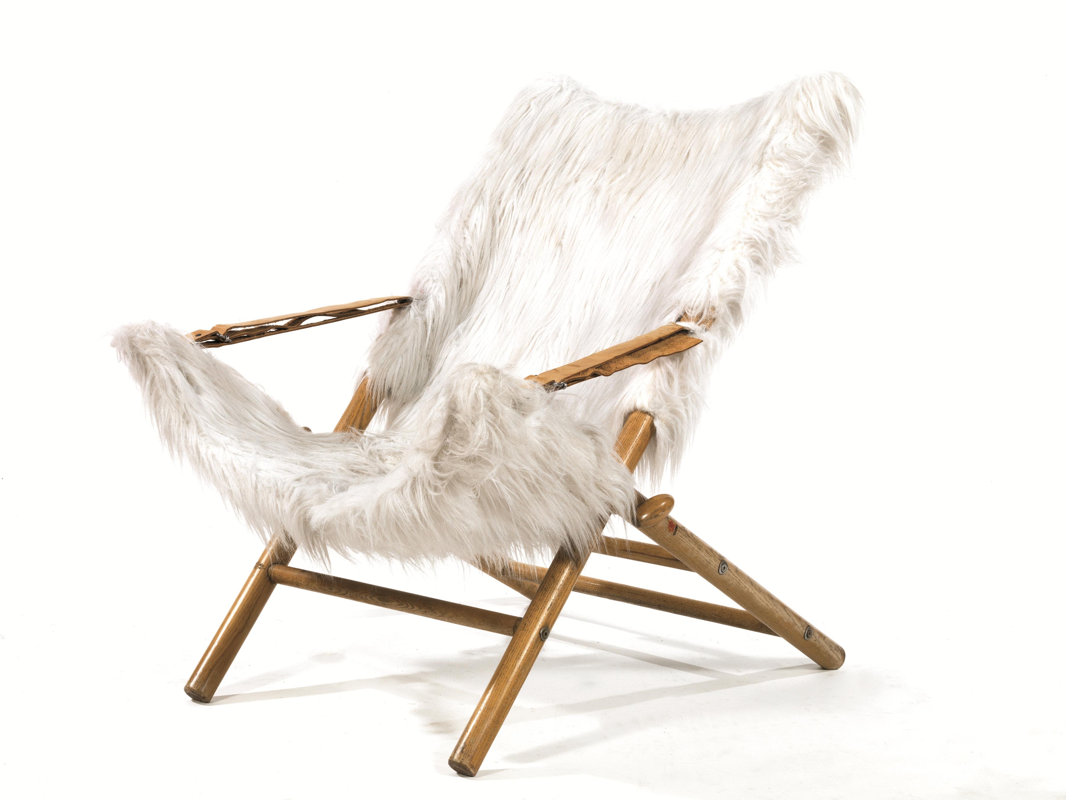 Poltrona, struttura in legno e seduta in pelliccia ecologica, produzione Emu...