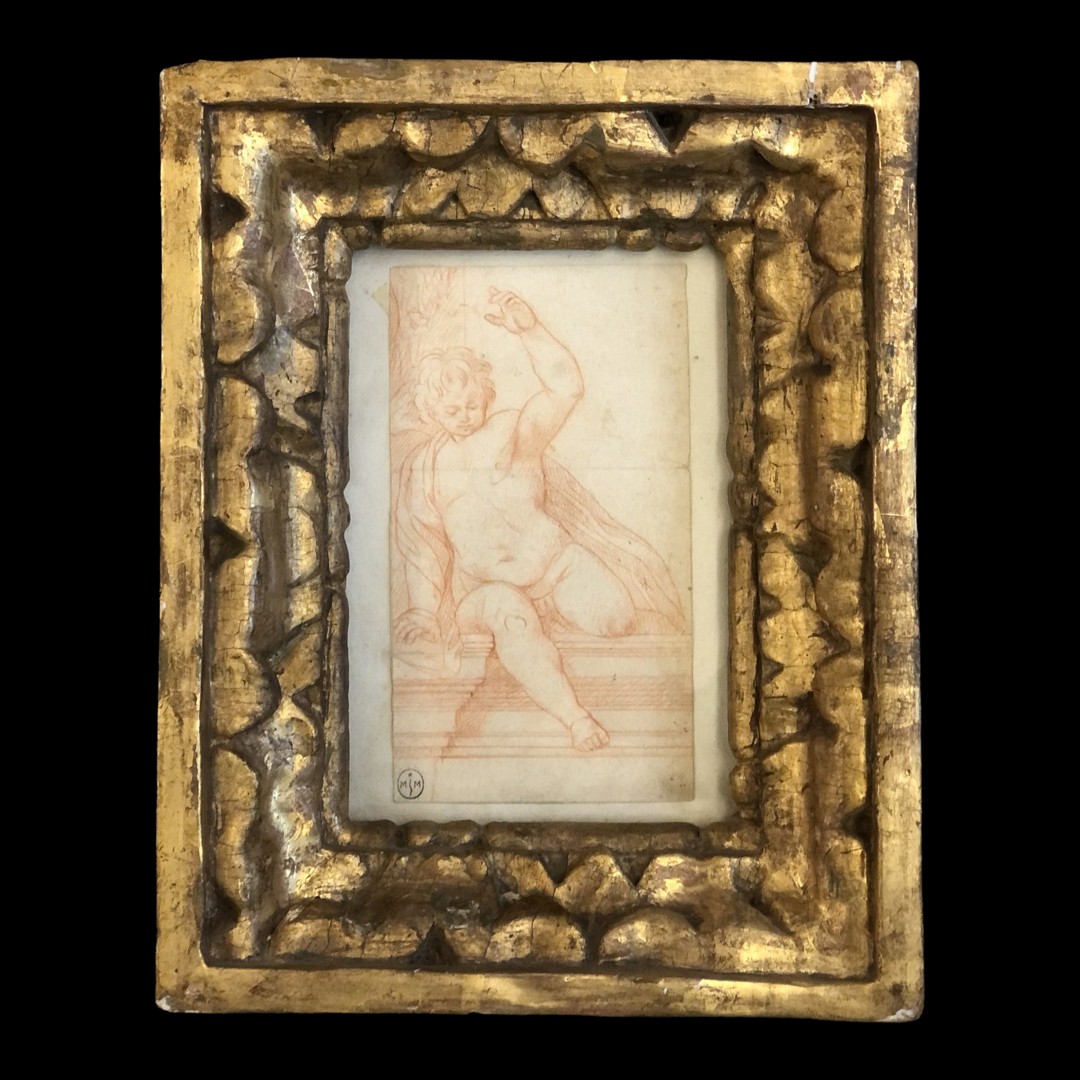 Disegno raff. nudo di giovane sec. XVIII in bella cornice dorata