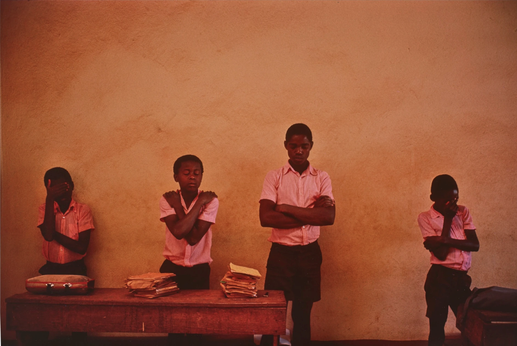 Alex Webb "Haiti School Prayers, Bombardopolis". Year 1986. Color photograph. Size cm 50 x 60 ca. Ed. 4/20. Signed, titled and numbered on the back. Provenance: Alex Webb Studio; Private Collection, Brescia (Italy). Publication: "Viaggio nella fotografia contemporanea", curated by Paci contemporary gallery, 2007