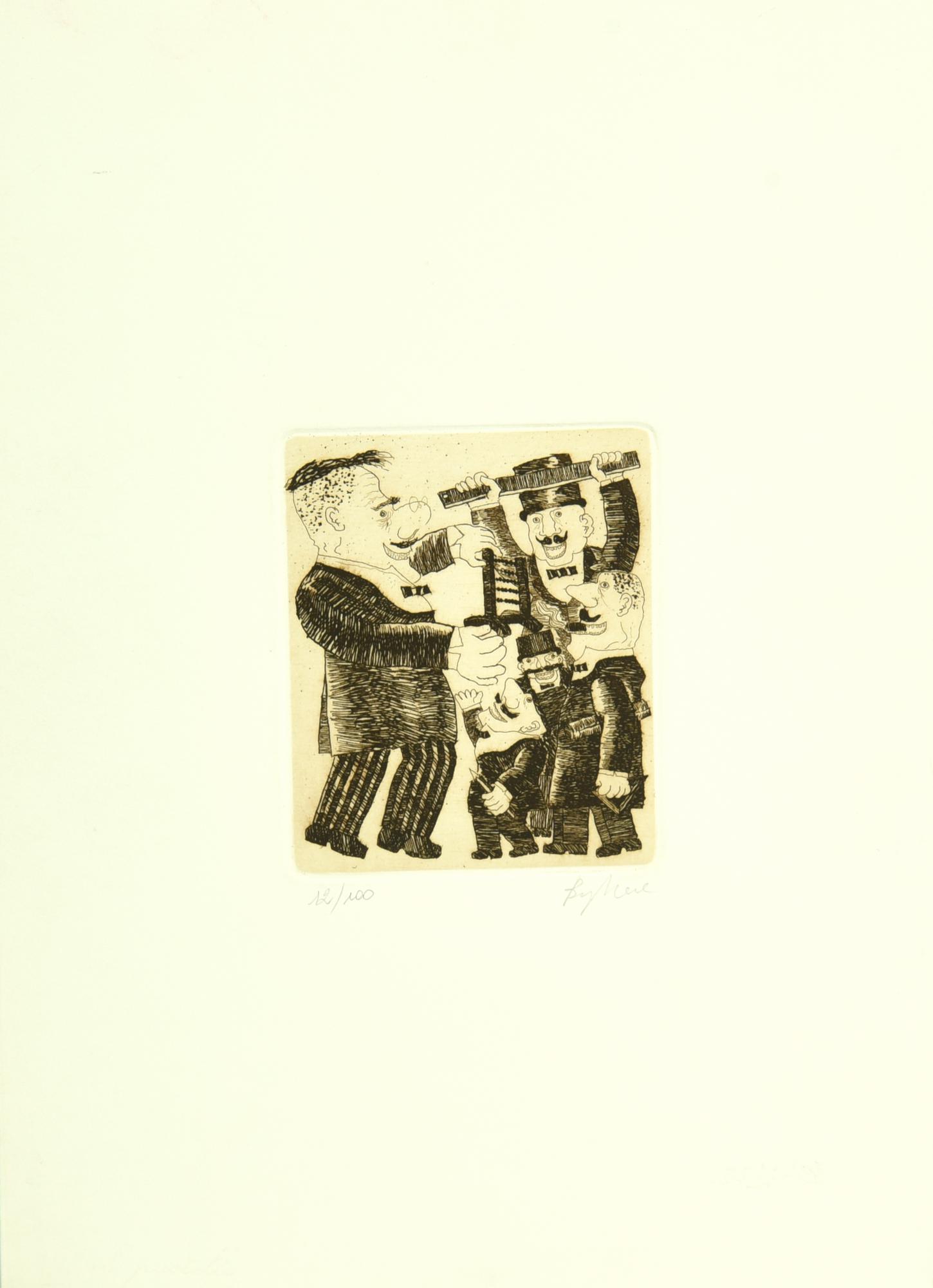 Franz Borghese PERSONAGGI acquaforte su carta, cm 12x10, su foglio cm 35x25;...