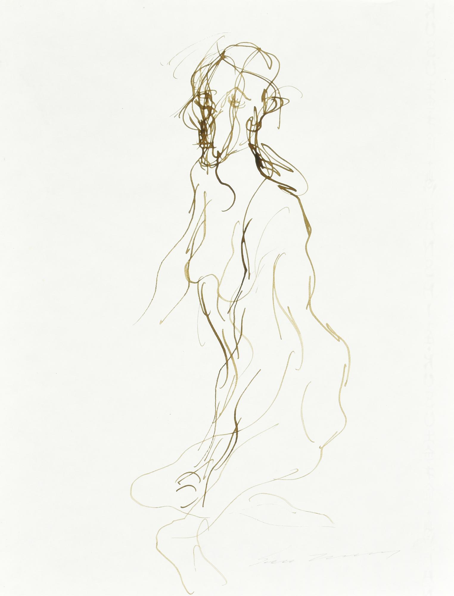 Ernesto Treccani FIGURA IN GRIGIO VERDE tecnica mista su carta, cm 30x21 firma