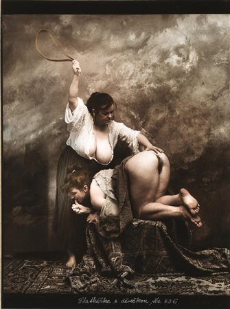Jan Saudek(Praga 1935)LANDLADY WITH MAID stampa ai sali d'argento colorata a...
