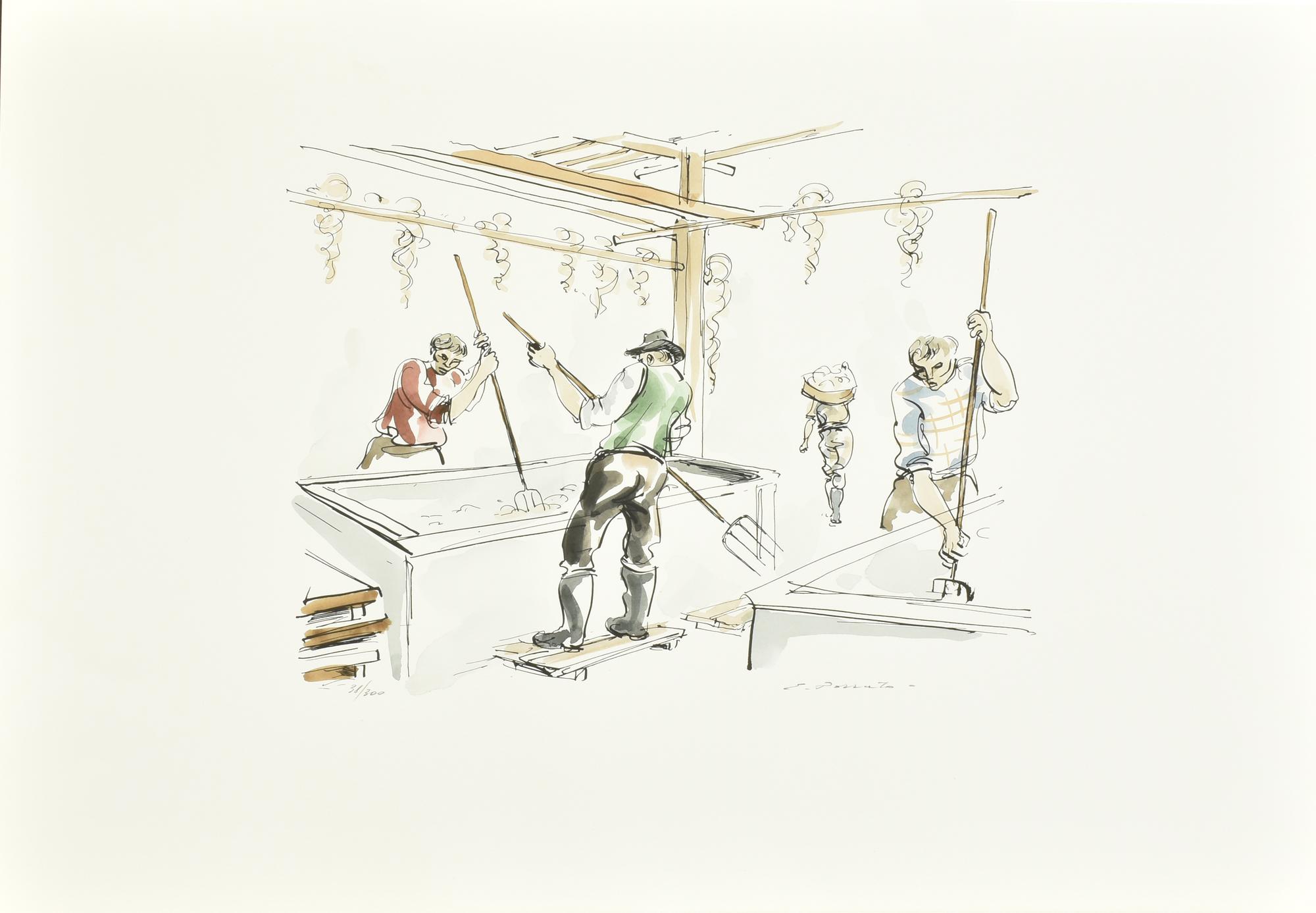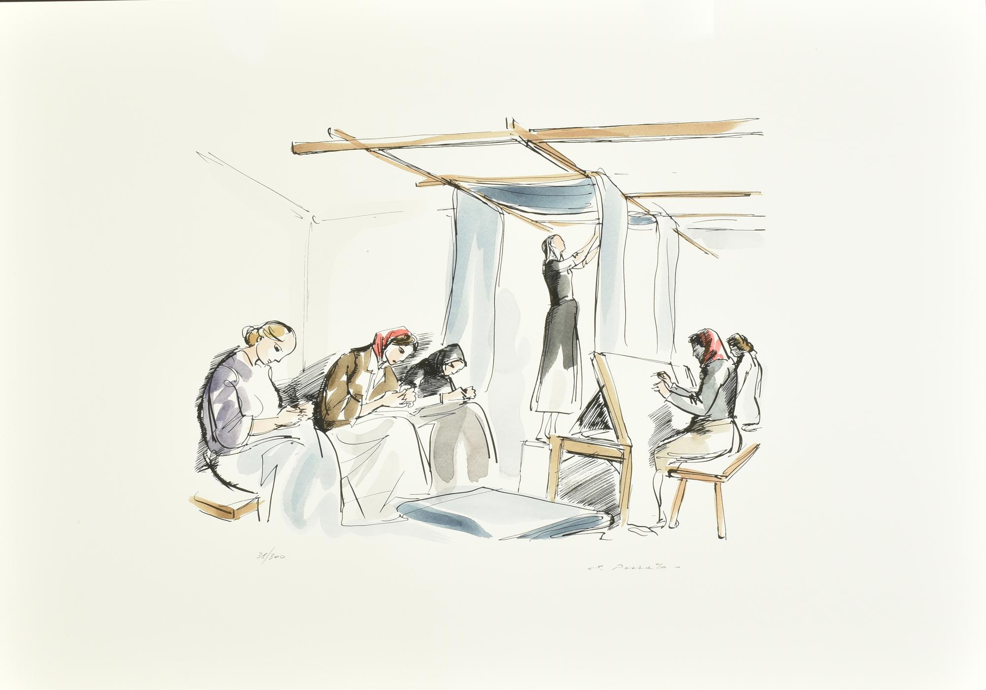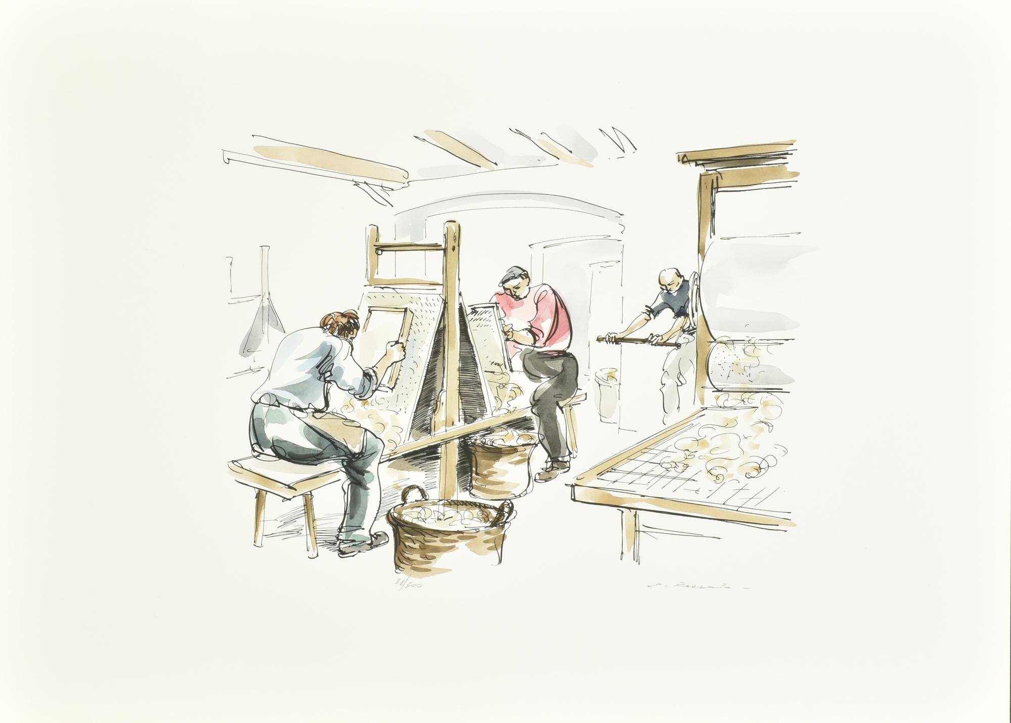cartellina contenente dodici serigrafie acquarellate a mano, cm 70x50; es. 38/300