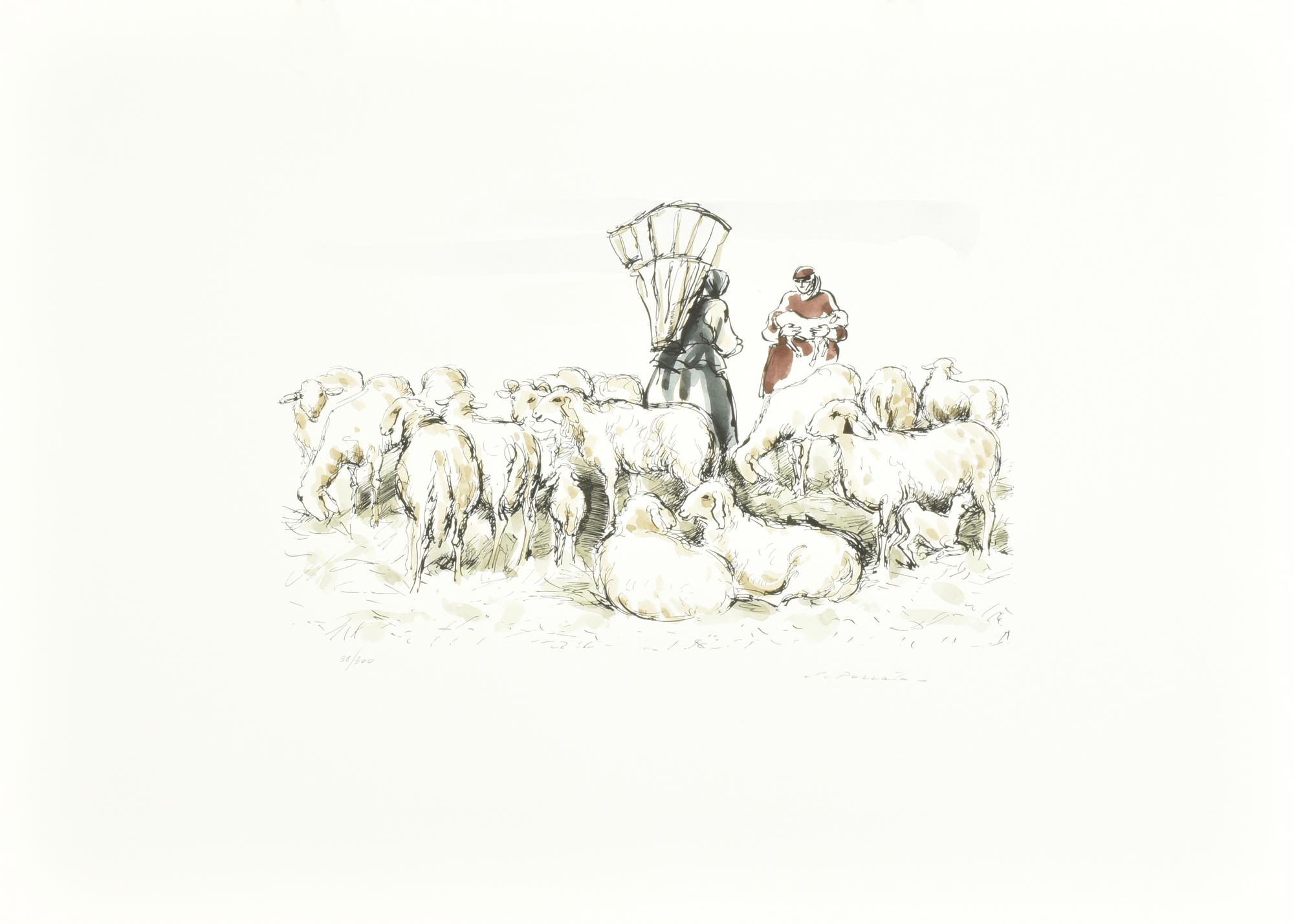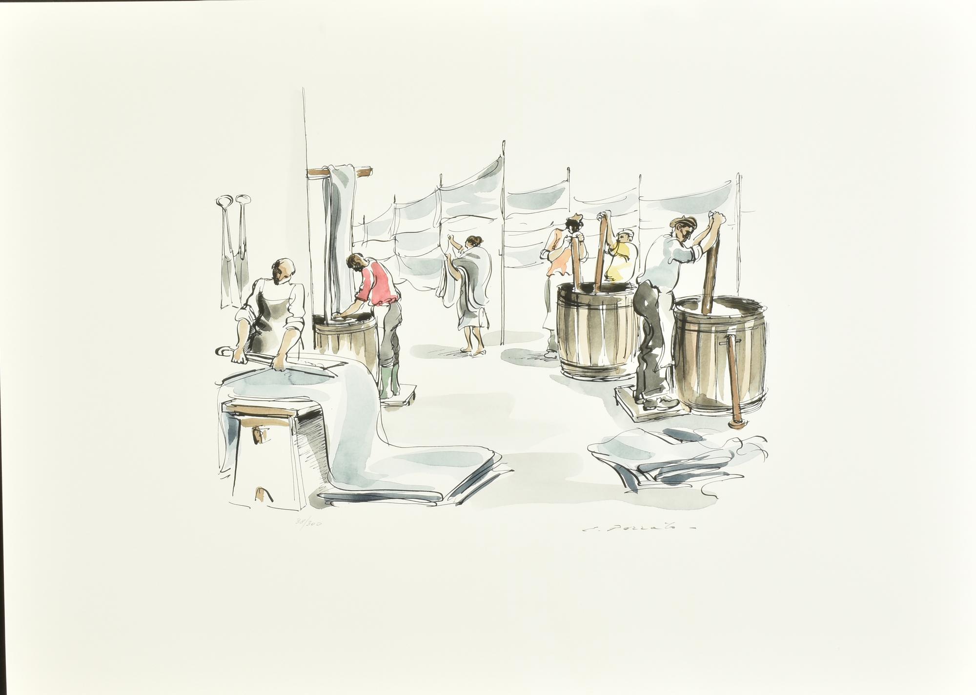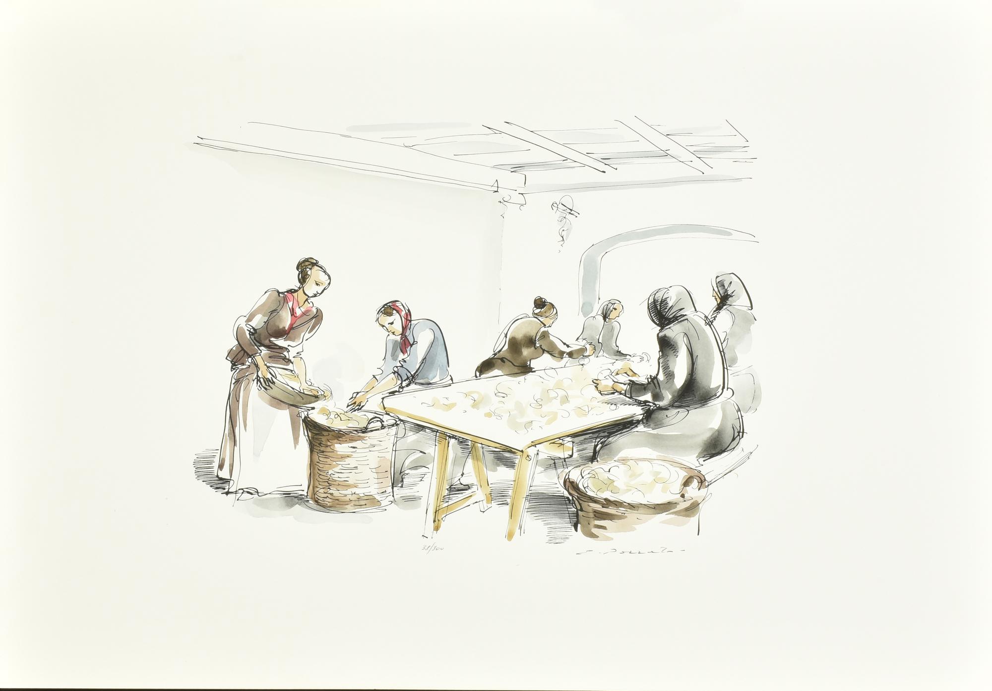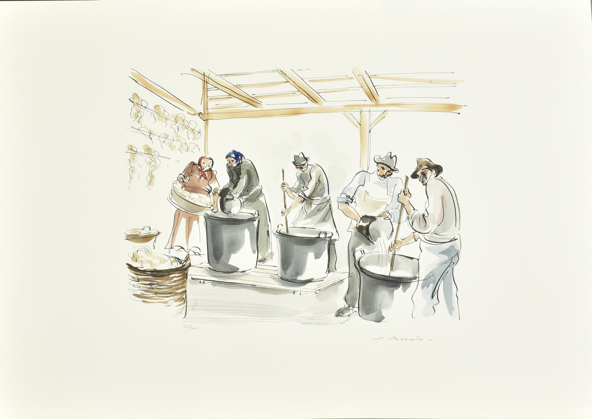 cartellina contenente dodici serigrafie acquarellate a mano, cm 70x50; es. 38/300