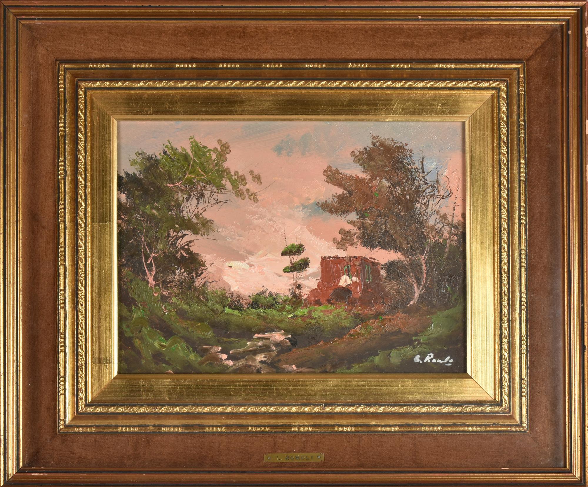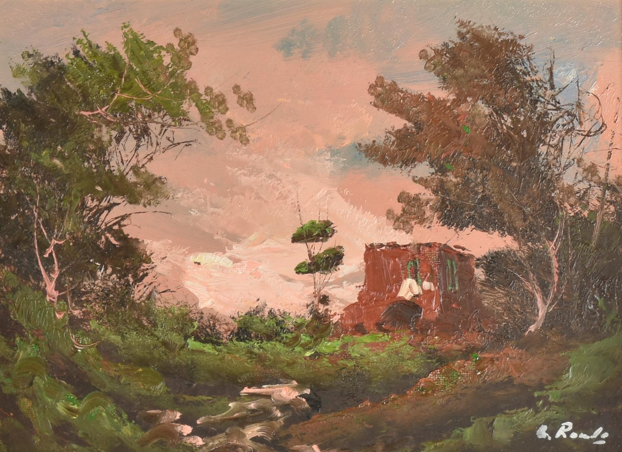 L. Romoli PAESAGGIO CON CASTELLO olio su masonite, cm 28x38 firma