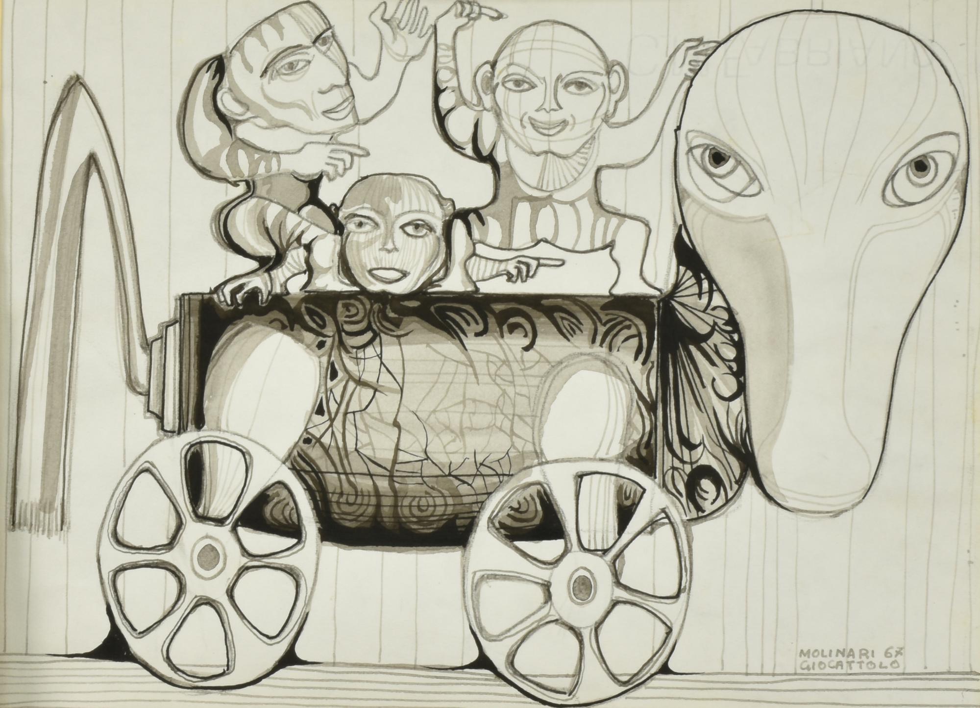 Mario Molinari GIOCATTOLO matita, china e aquarello su carta, cm 23x33 firma,...