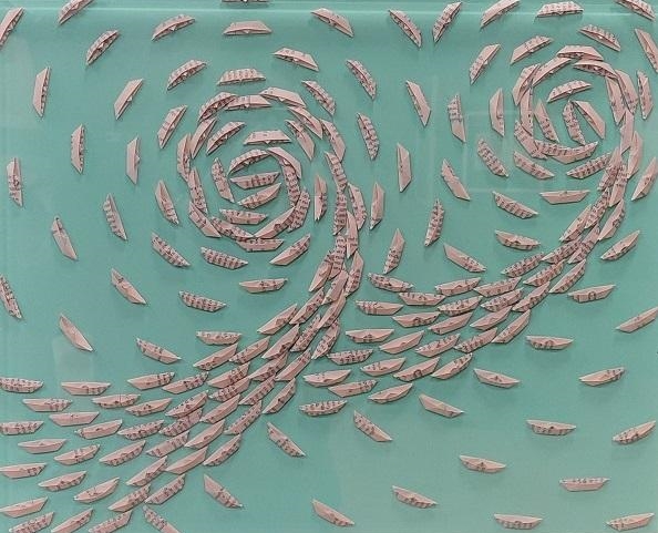 barche di carte su tela cm 45x55, titolo e firma al verso