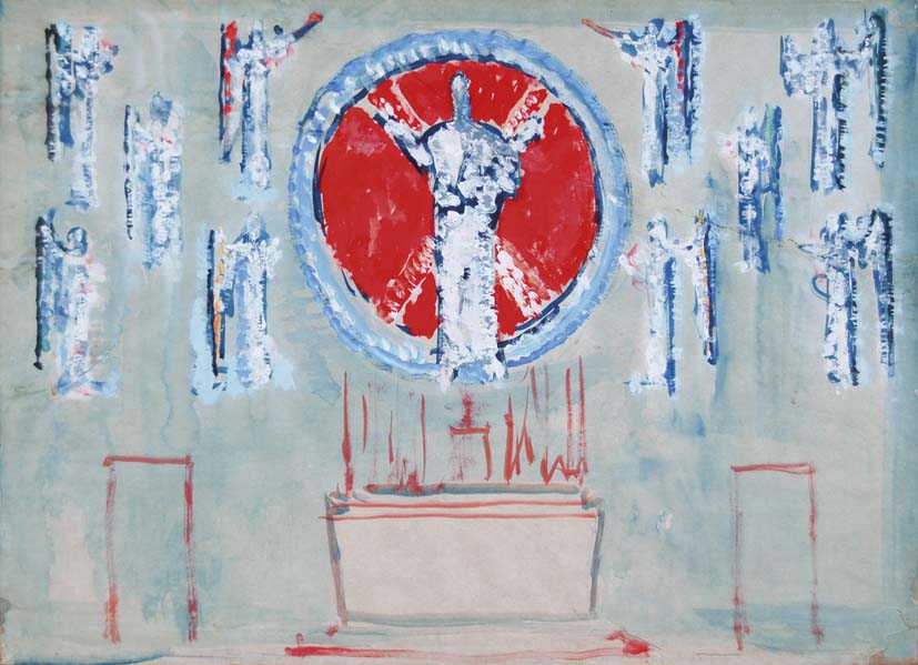 CADORIN GUIDO Venezia 1892 - 1977 Bozzetto per un altare a San Giusto tecnica mista su carta 53x75 La carta presenta difetti