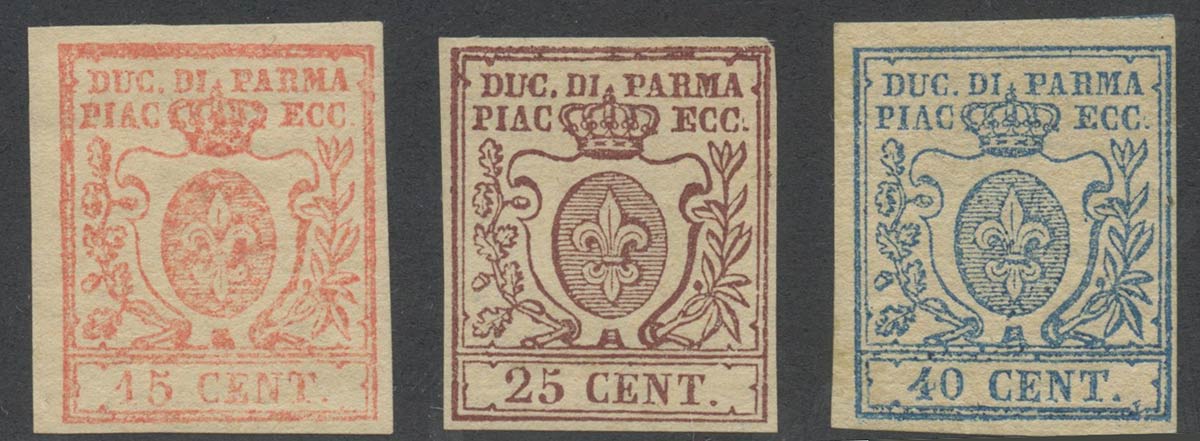 1857, N.9/11 serie completa nuova con gomma, linguellata. Il N.10 firmato Alberto Diena. (A+) (2860)