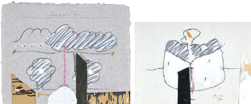 POZZATI CONCETTO Vo' Vecchio 1935 Impossibile paesaggio 1990 lotto di 2 tecniche miste e collage su carta 24x32 15x21 entrambi firmati e datati Esposizioni: Galleria d'Arte Contemporanea Padova etichette al retro