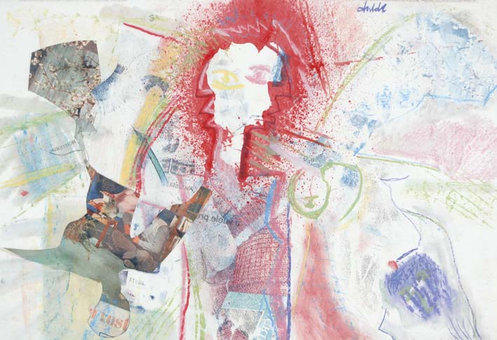 ORLER DAVIDE Fiera di Primiero 1931 - Venezia 2010 senza titolo tecnica mista e collage su carta 31,5x47,5 firma in alto a destra