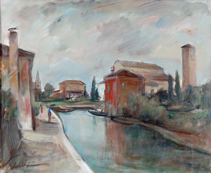 POLESELLO EUGENIO Pordenone 1895 - Torino 1983 Torcello olio su tela 45x55 firma in basso a sinistra