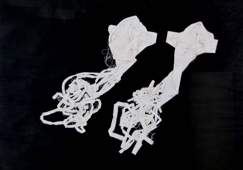 BONFA' CARLO Pegognaga (Mn) 1944 senza titolo 1968 collage di stoffa su carta 70x100 firma e data in basso