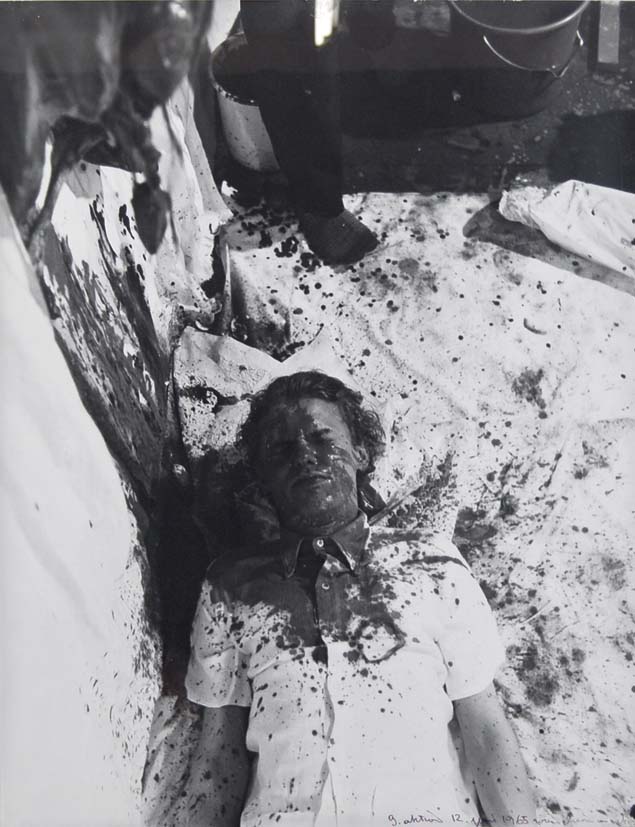 NITSCH HERMANN Vienna 1938 9 - Action 1965 fotografia bianco nero pezzo unico 65x50 firma data e titolo in basso a destra Provenienza: Archivio Francesco Conz Verona - timbro al retro