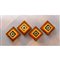 Quattro lampade da parete ad una luce, corpo quadrato composto da cinque piani sovrapposti in metallo verniciato senape e metallo cromato.