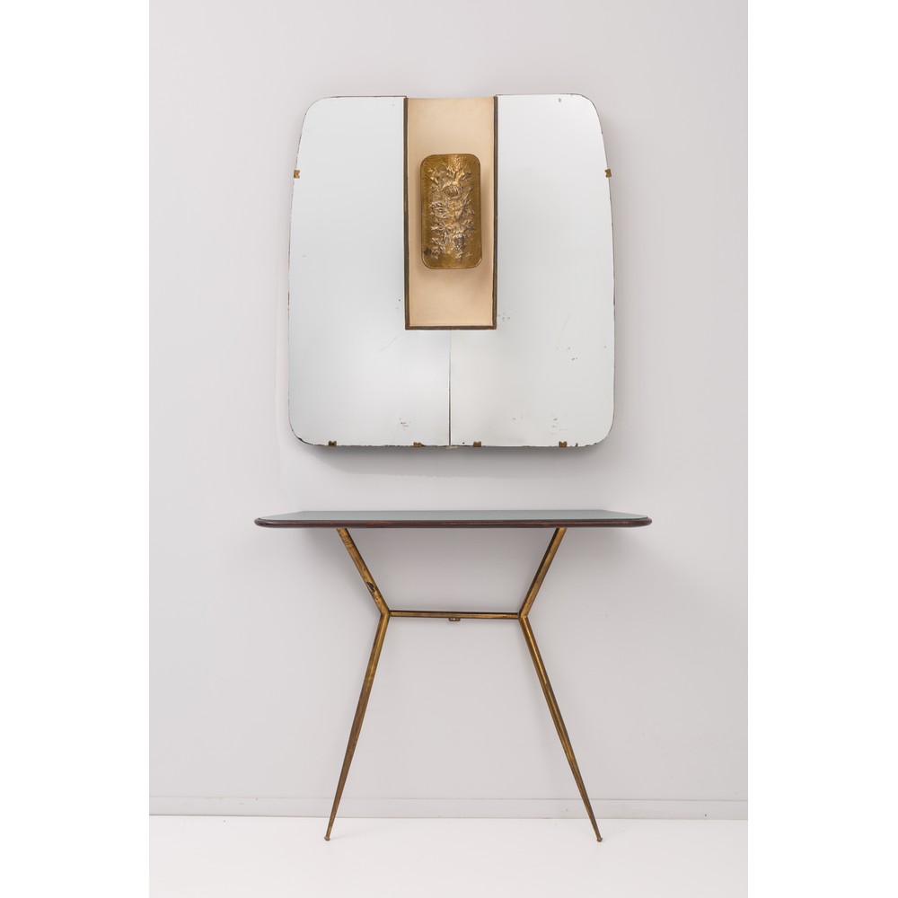 CRISTAL ART (Attr.le), Consolle in ottone e legno con specchio