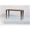 Consolle con gambe piramidali in legno laccato nero, piano rettangolare con impiallacciatura in radica di noce.