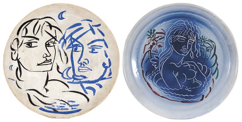 ZANCANARO TONO Padova 1906 - 1985 senza titolo 1972 lotto di 2 piatti in ceramica dipinti fronte e retro diam. cm. 30 - 32 entrambi firmati e datati al retro
