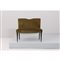 Panca con spalliera, struttura in legno con imbottitura e rivestimento in tessuto verde, gambe in legno coniche, scarpette in ottone.