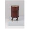 Mobile bar su ruote, corpo cilindrico in legno lavorato con scanalature, sportello a serranda, piano girevole, elementi in ottone.