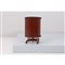 Mobile bar su quattro ruote, corpo cilindrico in legno, piano circolare, sportello a serranda.